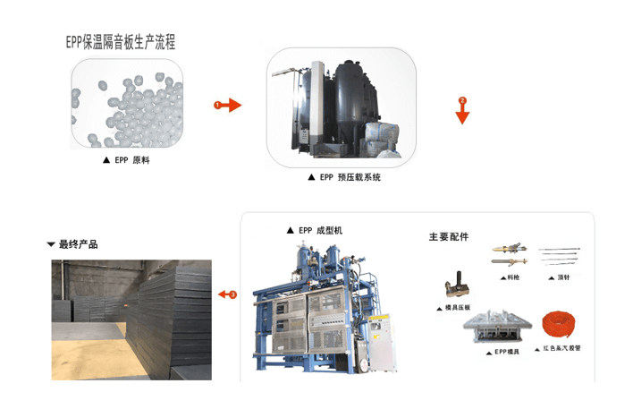 生产设备主要是高压釜、挤出机、切?;统尚蜕?,将微晶颗粒和发泡剂加入高压釜中,通过高温高压,在通过挤出机、切?;竦贸善積pp颗粒,根据客户定制要求,使用成型生产机将epp颗粒加工成需求产品。