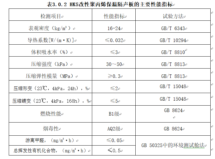 HKS改性聚丙烯保温隔声板性能指标
